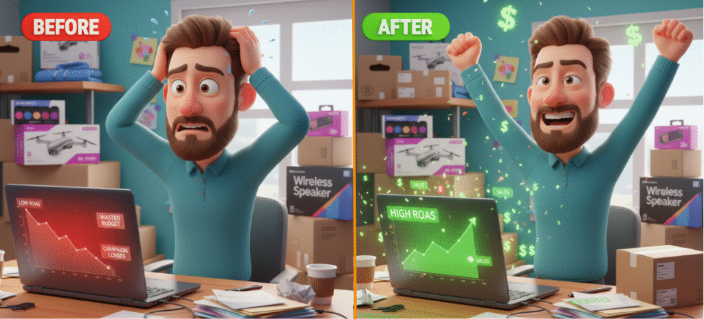 Our ROAS REVIVAL SYSTEM. Built with endless testing, revives broken accounts and turns them into profit machines.