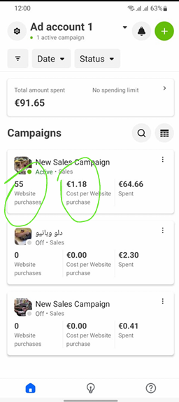Spent just €64.66 and generated 55 purchases at €1.18 per sale, delivering nearly 10x ROAS.